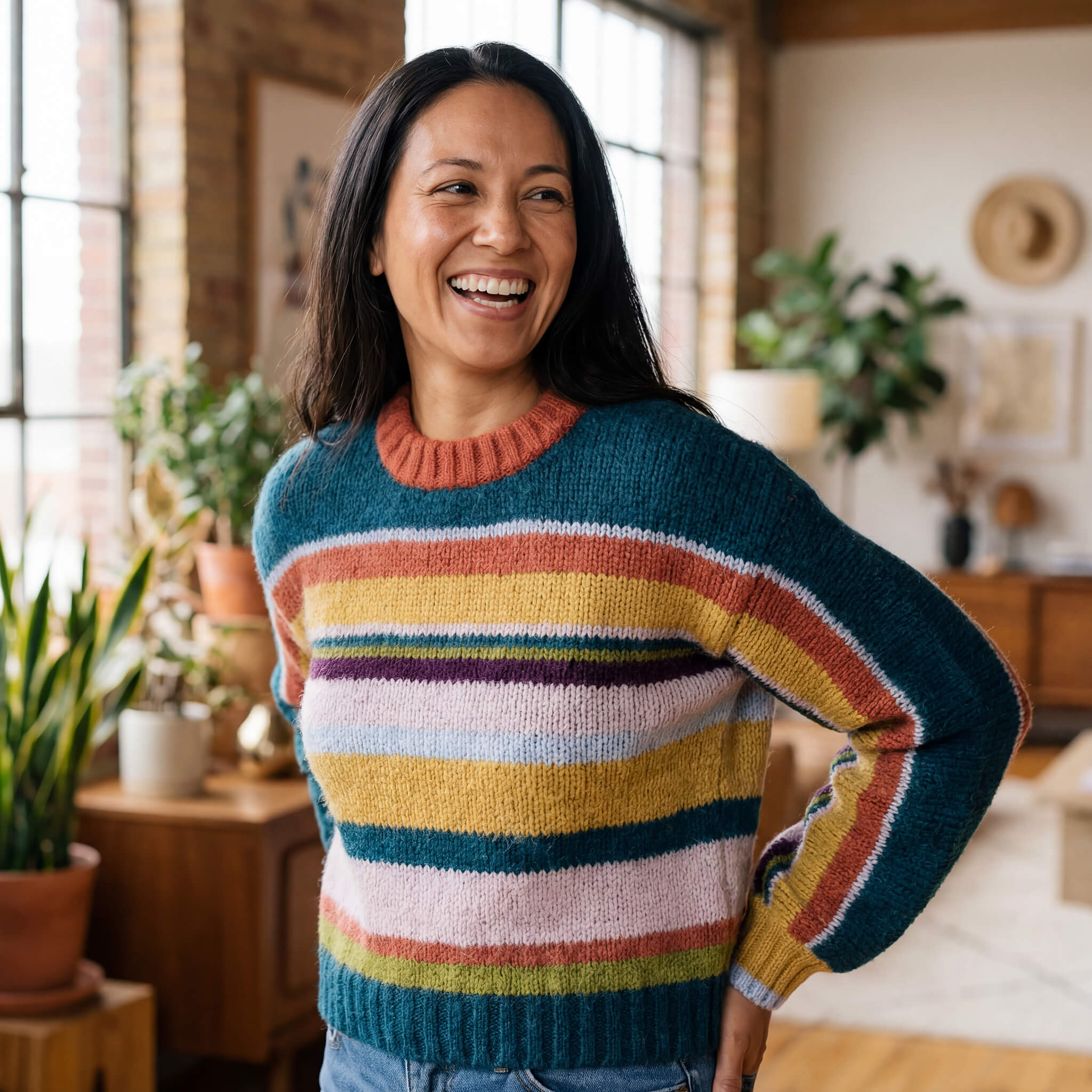 Bunter Alpaka Pullover für lebensfrohe Farbvielfalt in deinem Alltag. Der Pullover ist so weich, dass er direkt auf der Haut getragen werden kann und dich in sanfte Wärme hüllt. Gefertigt aus feinster Alpaka Naturfaser.