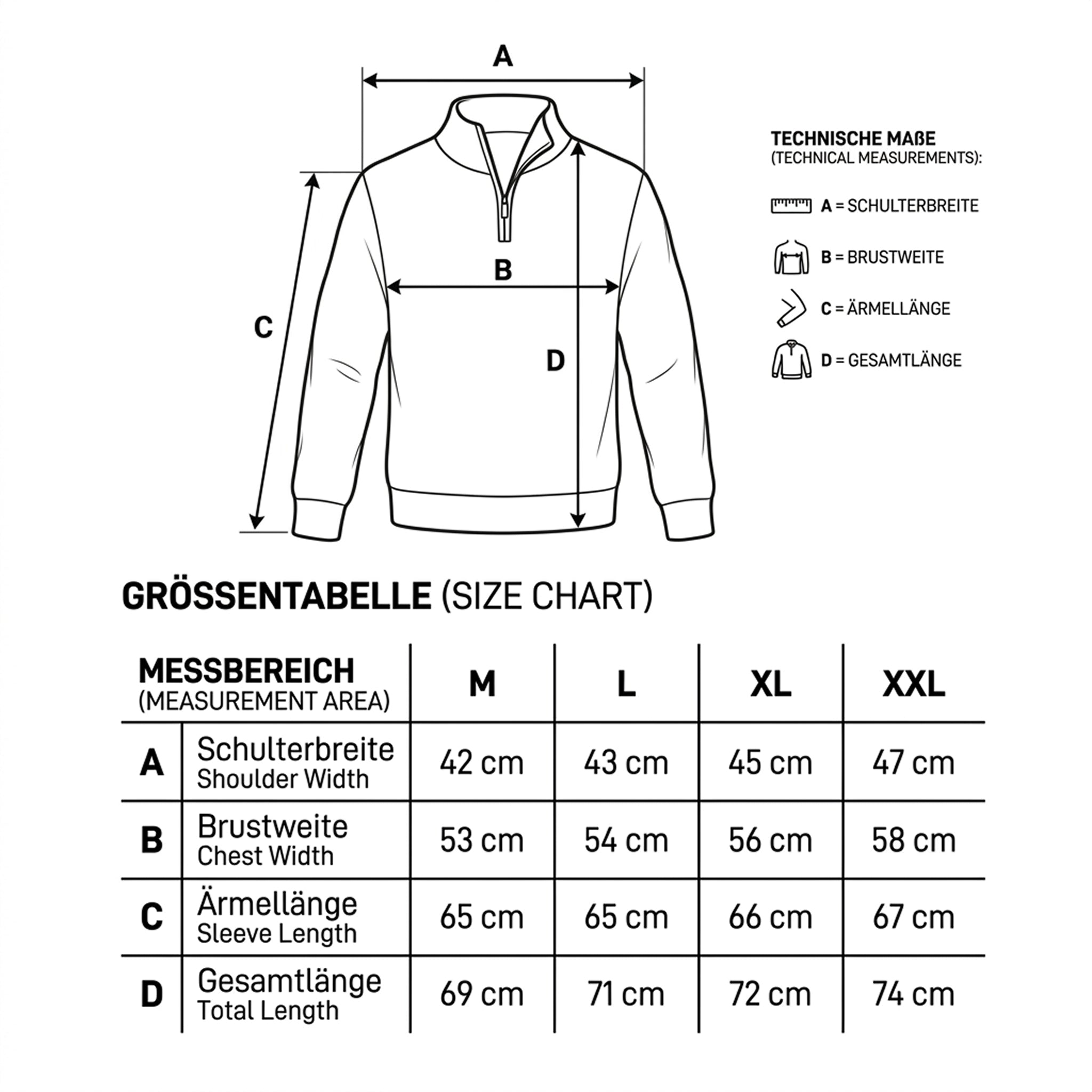 Detaillierte Grössenangaben zum Alpaka Troyer KATARI für M bis XXL